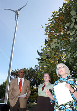 Under the metallic glint of Portland Community College’s new wind turbine, President Preston Pulliams signed the college’s Climate Action Plan – part of it’s commitment to a 2007 national climate initiative to reduce carbon emissions.