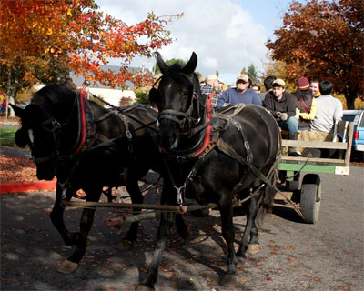 On Saturday, Oct. 24, the 2009 Harvest Festival at Portland Community College’s Rock Creek Campus featured hayrides through the natural campus setting for thousands of people from the local community. In addition to hayrides, Rock Creek staff and students put its award-winning recycling loop program on display for attendees. The loop system features growing cafeteria food in campus gardens and vermi-composting cafeteria food scraps and returning nutrient-rich worm castings to the garden soil.