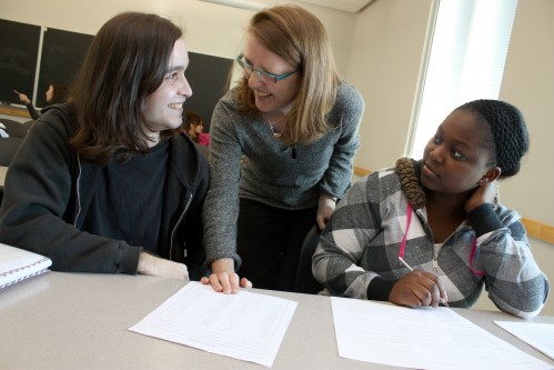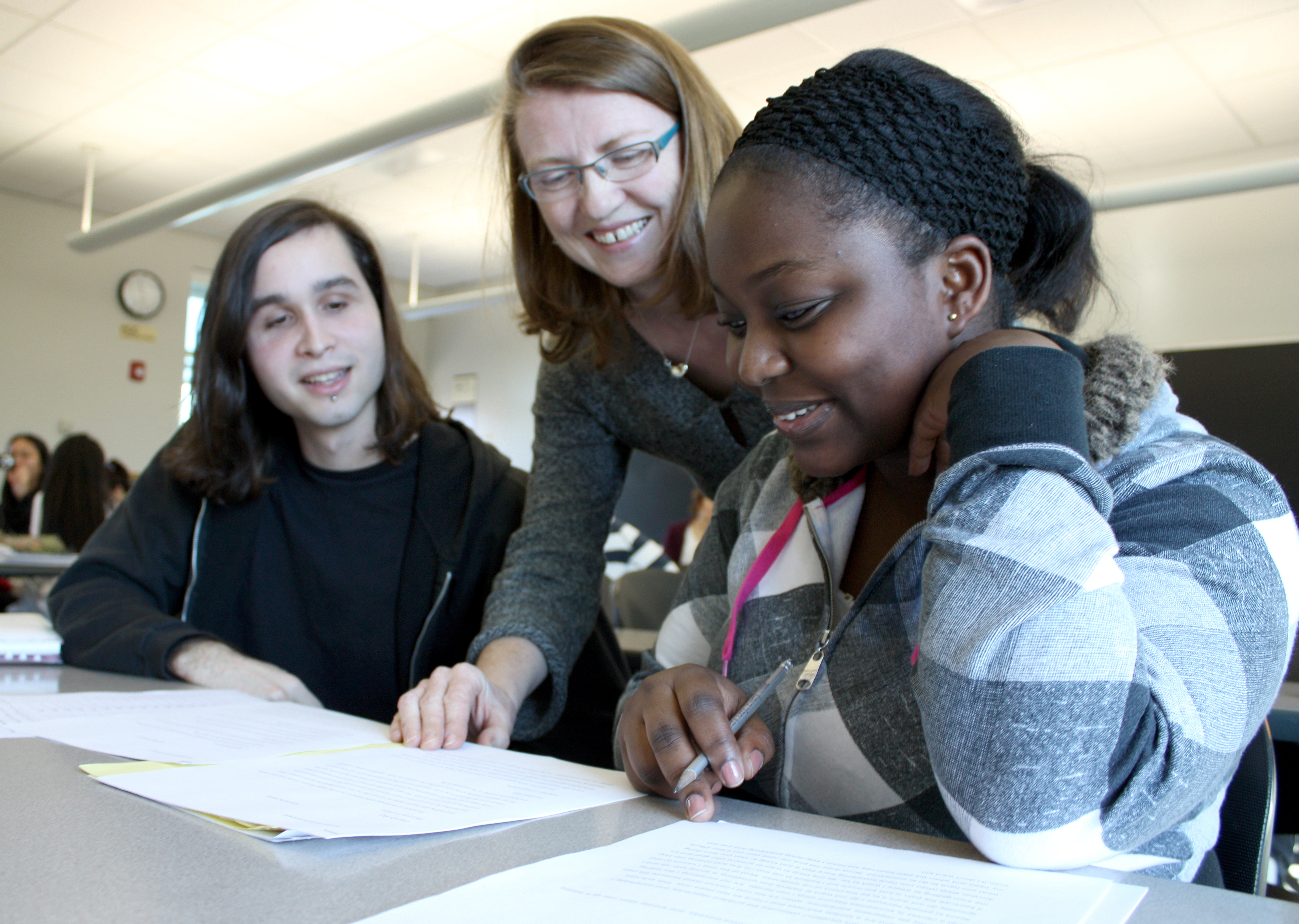 International Student Adviser Marie Mahon (center) goes over paperwork that international students Daniel Dominguez and Nadine Musafiri Bitondo will need for their classes during a recent College Success class at PCC's Sylvania Campus, 12000 S.W. 49th Ave.