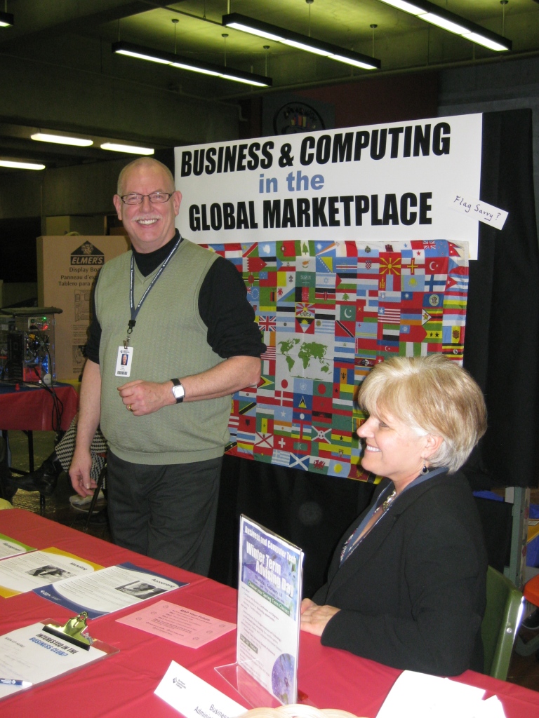 Gary Coleman and Marta Laakso, on staff with the Business Administration, Computer Technologies and Real Estate division at the Sylvania Campus, staff their division table at this year's Map Your Future and Student Services Information Fair event. Hundreds of Sylvania students attended the second annual Map Your Future on Feb. 10 in the Upper Mall of the CC Building, to glean guidance about different majors and programs at PCC and to talk with faculty and staff.