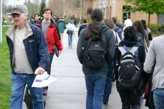 Cascade Campus Business Office needed staff to direct students on the first day of spring term.