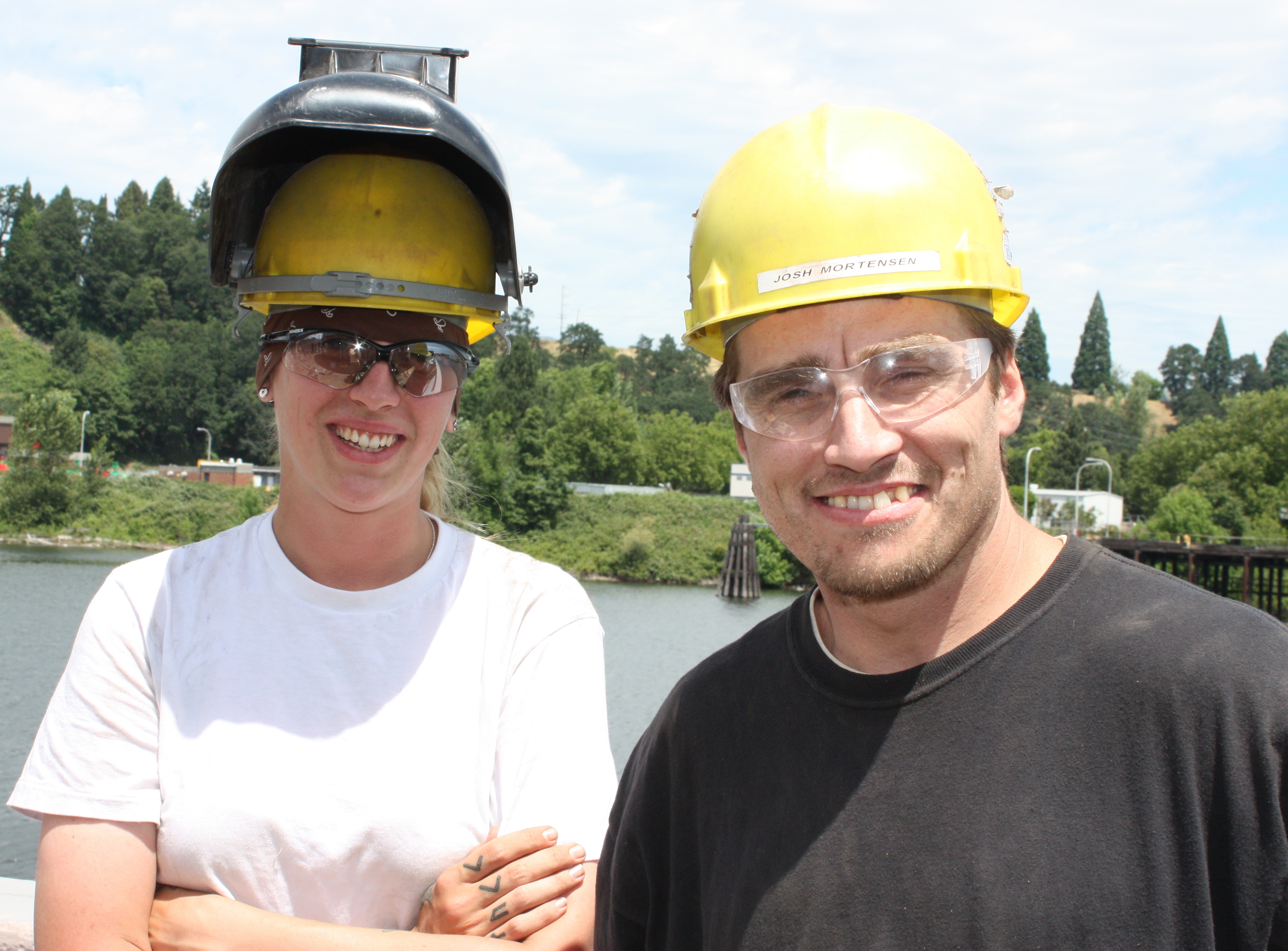 They have to twist and contort in tight, small, claustrophobic places in floating vessels high above the Willamette River. Make no bones about it: it’s rough and tough work. And Vigor Industrial apprentice welders Josh Mortensen and Erin Martin absolutely love it.