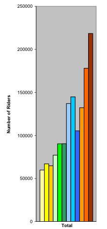 - Fall Term (2007 to 2009) – Up 68 percent or 27,600 in total riders.