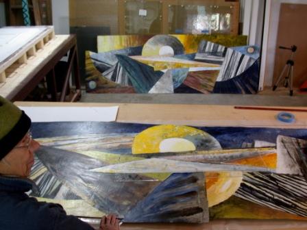 This exhibition, the first of the Helzer Art Gallery’s 2010-2011 season, is a behind-the-scenes look at one work of art: Parker’s “Evening Sun,” a fused-glass relief sculpture commissioned by a private client.