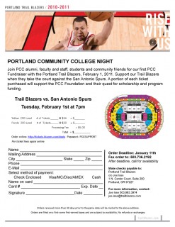 To reserve a ticket, call Joe Isse with the Portland Trail Blazers at (503) 963-3974. To make the donation count, remember to mention “PCC” when ordering.