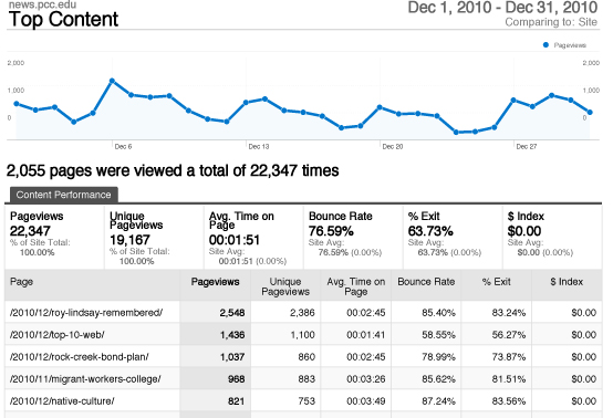 Public Affairs media and website report for December 2010
