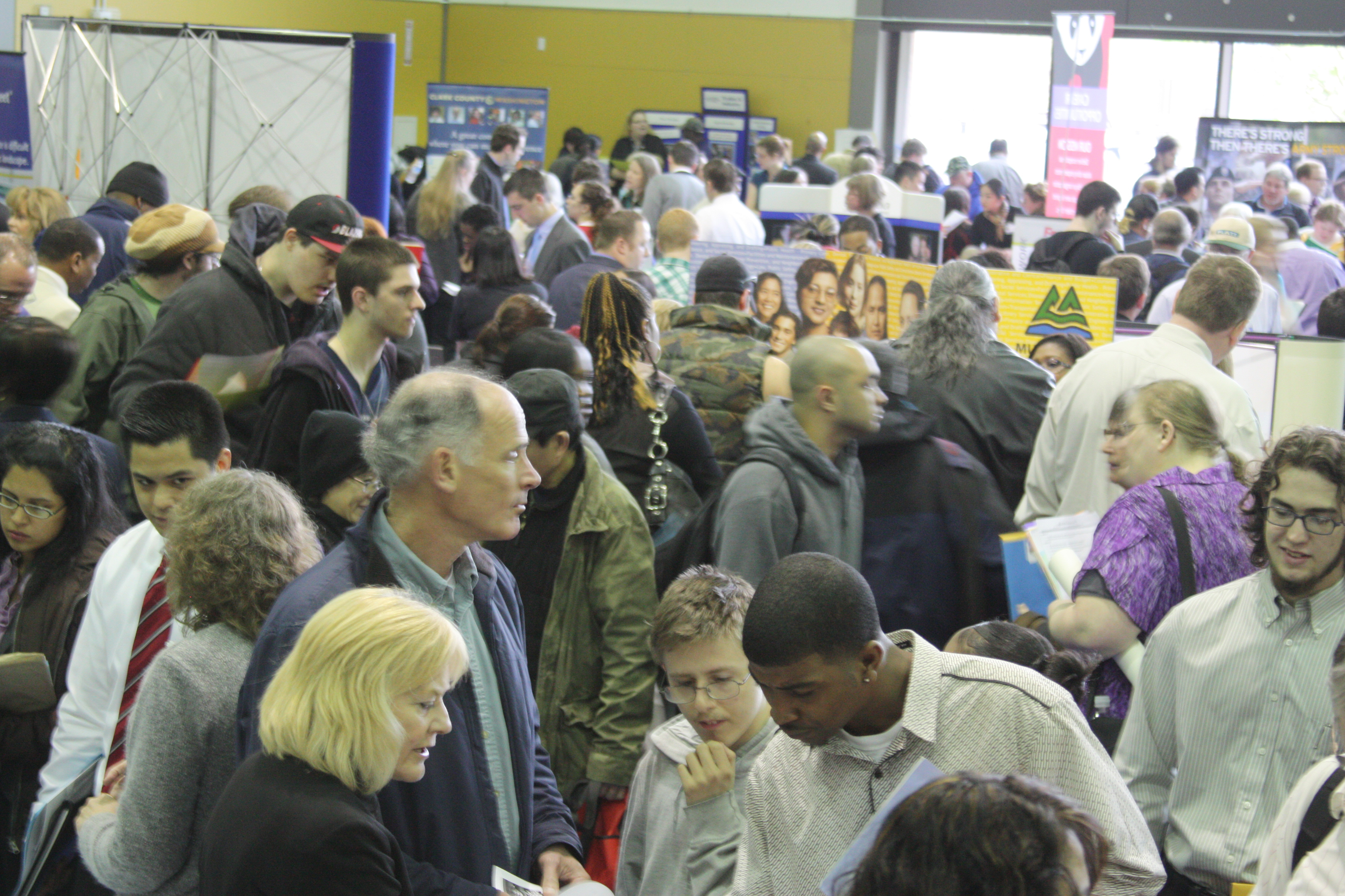 This media file is attached to: PHOTOS: Job fair packs Cascade Campus gym