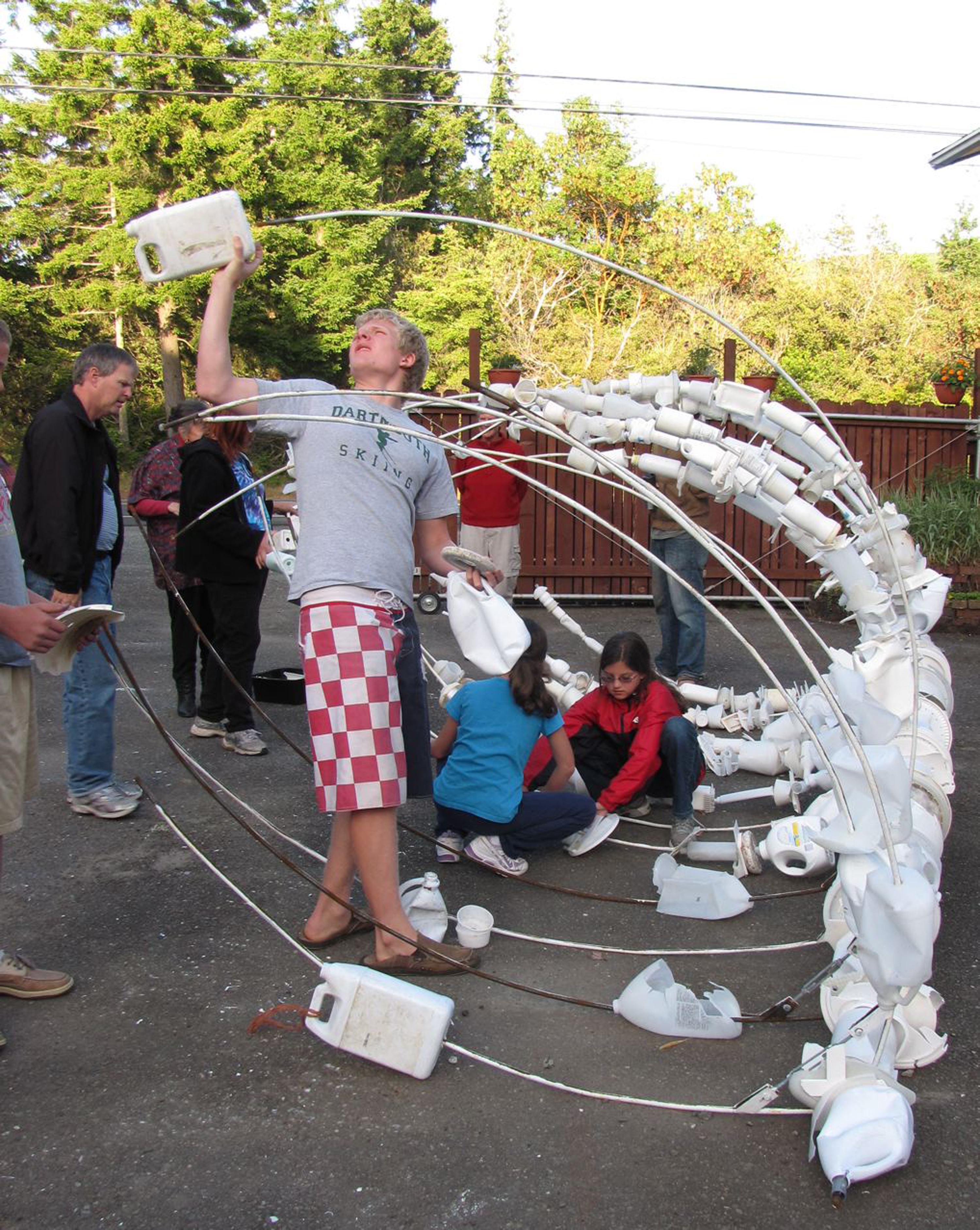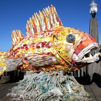 “Pelicans eat lids and lighters and are dying of starvation,” said the project’s director and lead artist Angela Haseltine Pozzi of Bandon. “Fish eat plastic pieces and are getting poisoned. Sea turtles devour plastic bags thinking they are jellyfish. Seals are being choked by plastic rings. Our beaches are being littered by garbage.”