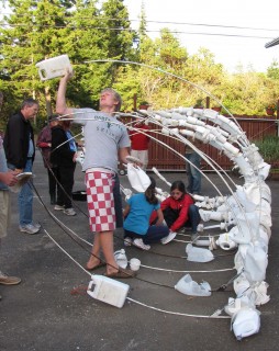 “Washed Ashore,” is a community effort to build giant sculptures of sea creatures most threatened by discarded plastics in the ocean. Sponsored by the Artula Institute, hundreds of volunteers and school children have helped create these sculptures, including a sea turtle, giant fish, jellyfish, coral, squid and even a whale skeleton.