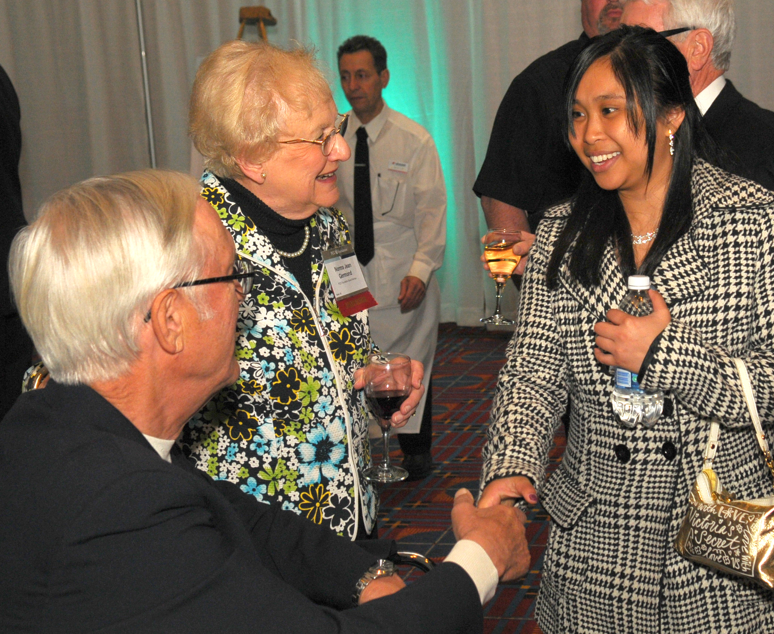 Norma Jean Germond (middle left) introduces her scholarship recipient Rebecca Go-Akers to former PCC President Jim Van Dyke at the PCC Foundation's scholarship banquet in May.