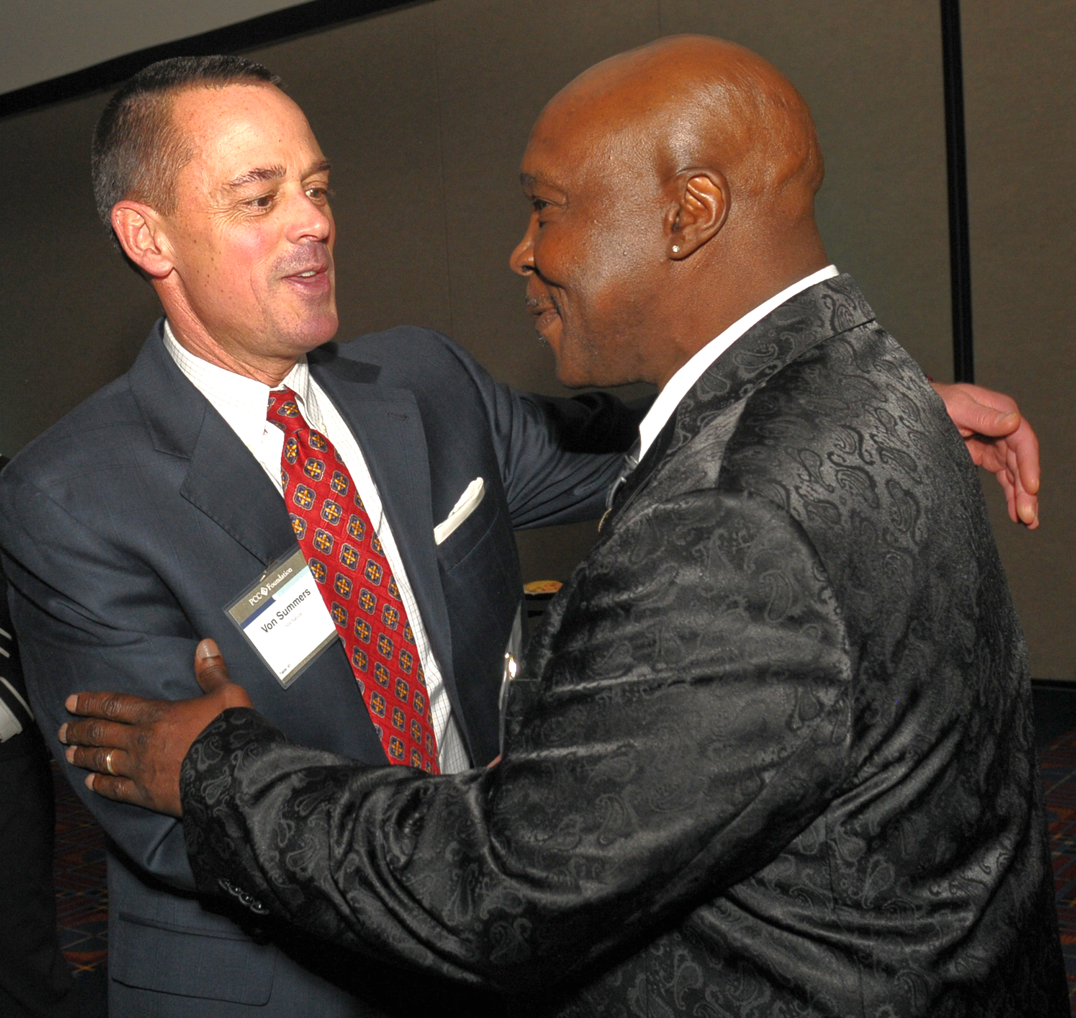 Von Summers (left) of Northwest Natural Gas congratulates Michael Ford for earning the Northwest Natural Gas Scholarship in 2010.
