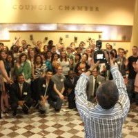 Students selected for Future Connect scholarships, which includes student support services and advising, got to meet Portland Mayor Sam Adams at the kick-off reception at City Hall on May 24.