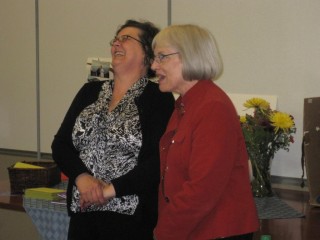 (From left to right) Sylvania Transitions Program Coordinator Ginny Christian and Sylvania Campus President Linda Gerber share a laugh at the spring term completion ceremony on June 8.
