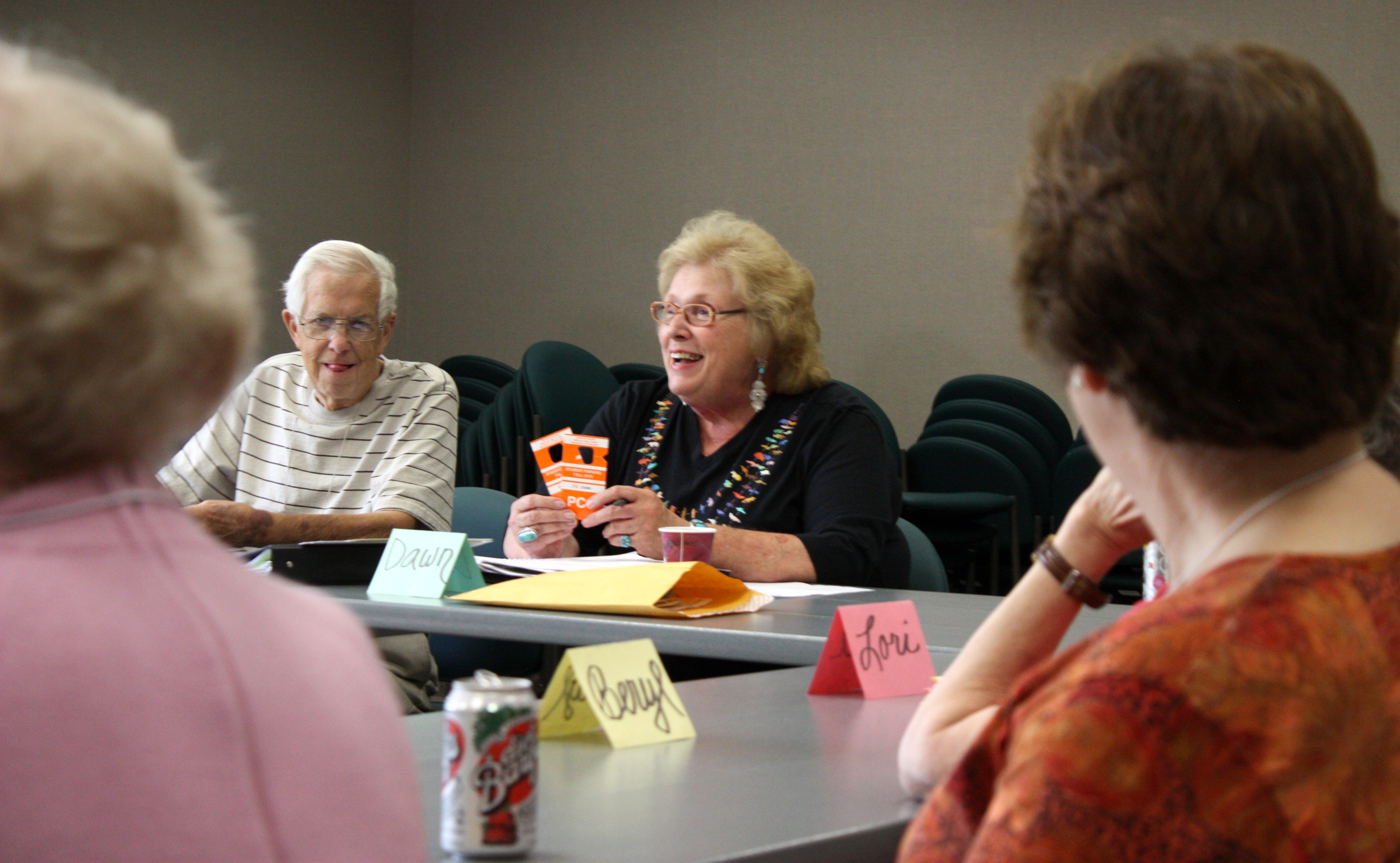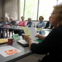 SSI facilitator Dawn Carol tells students all about PCC resources like parking during a current events class at the Lake Oswego Parks and Recreation Building on Kruse Way.
