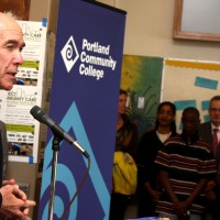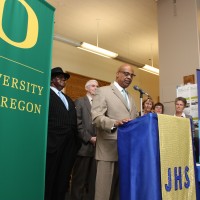 In addition, the program has operated on an opt-in basis – but starting this fall, the Middle College will expand to encompass every JHS freshman. PPS Superintendent Carole Smith was joined by PCC President Preston Pulliams, University of Oregon President Richard Lariviere, newly-appointed Jefferson Principal Margaret Calvert and Mayor Sam Adams to announce the news.