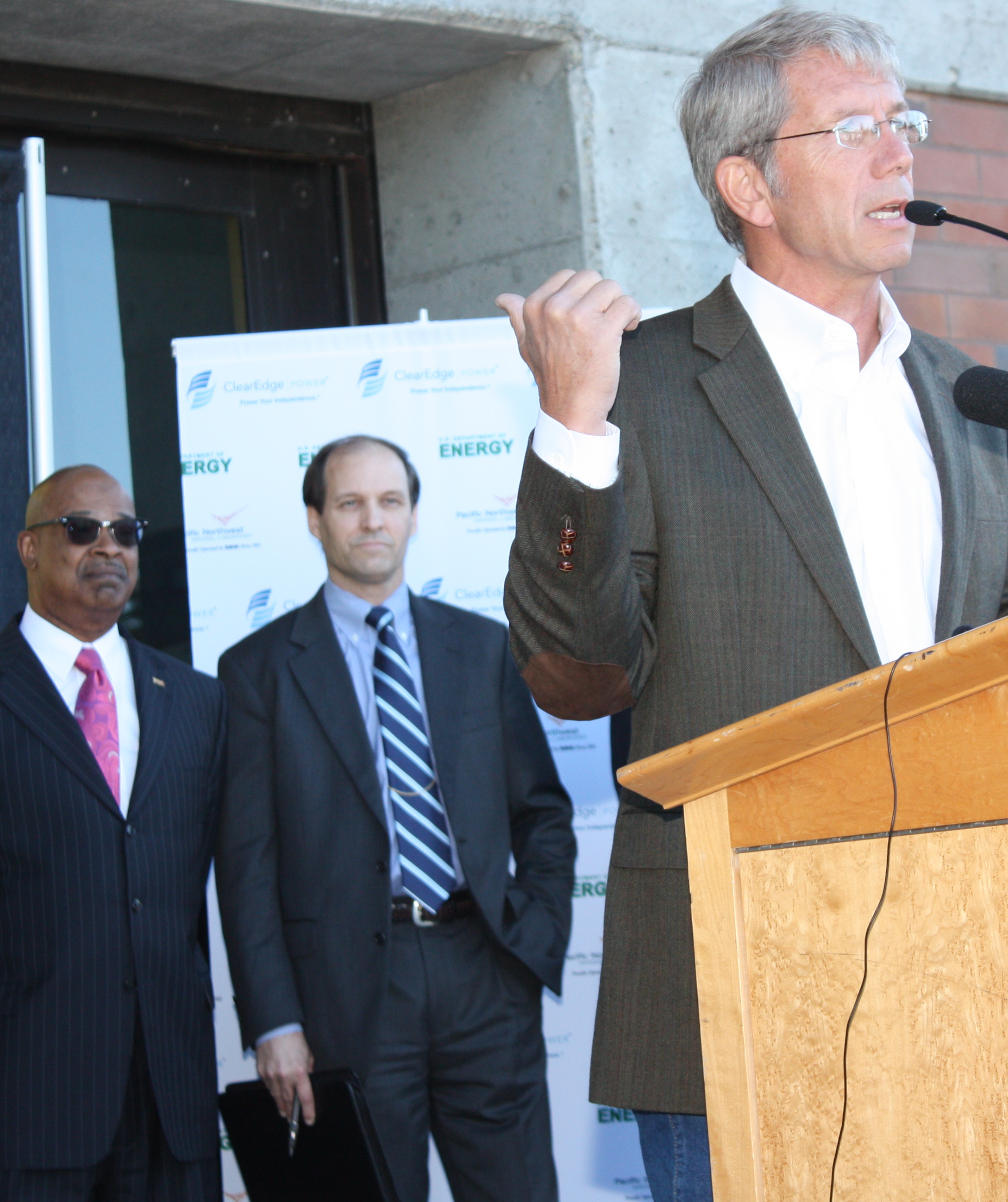The dignitaries came to Portland Community College’s Sylvania Campus in groups of two: Two members of Congress. Two state-of-the-art fuel cells. And a member each of the U.S. Department of Energy and Hillsboro-based ClearEdge Power, the maker of the cutting-edge fuel cells.