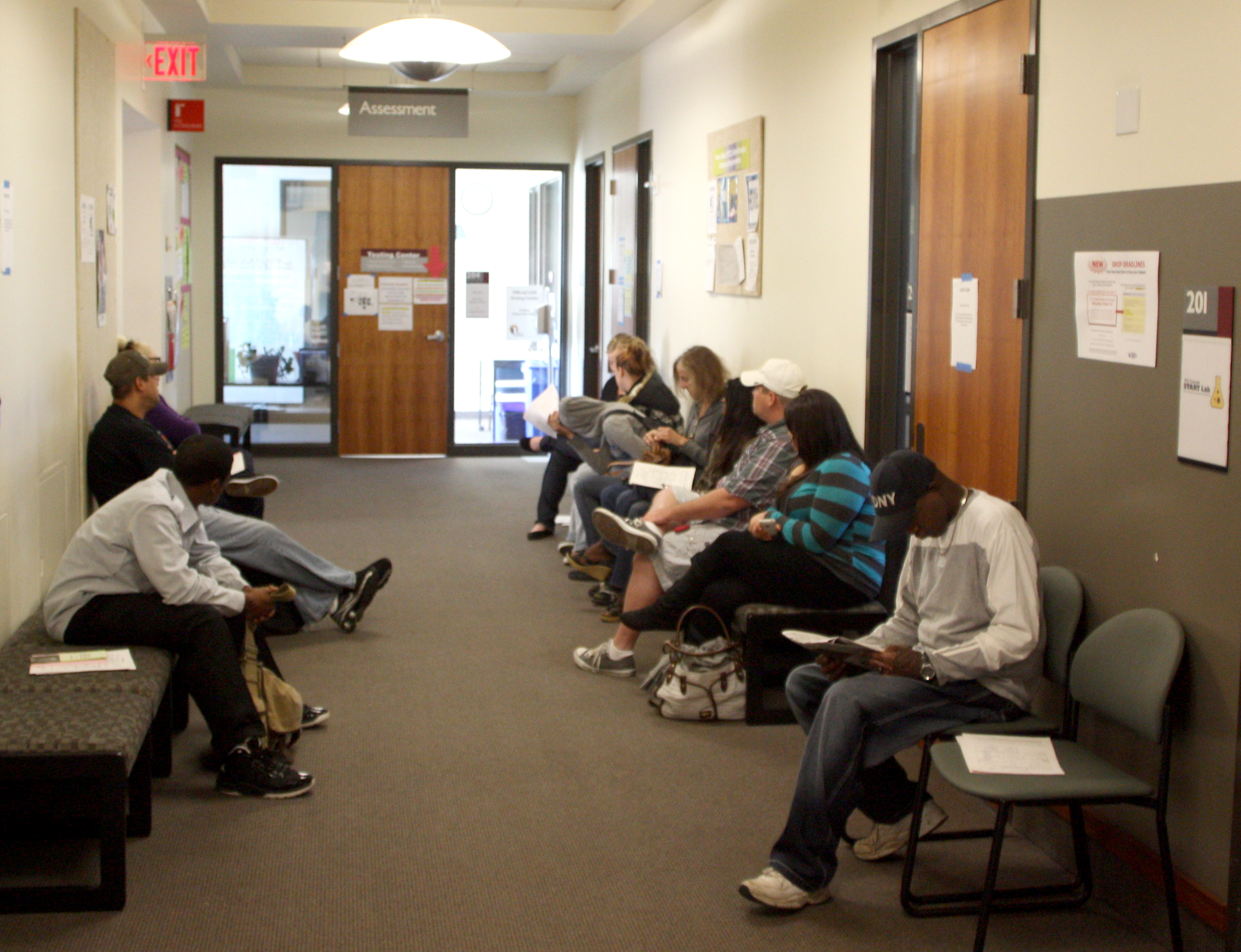 Students wait for the name to be called outside of the Cascade Campus placement testing office the first week of school.