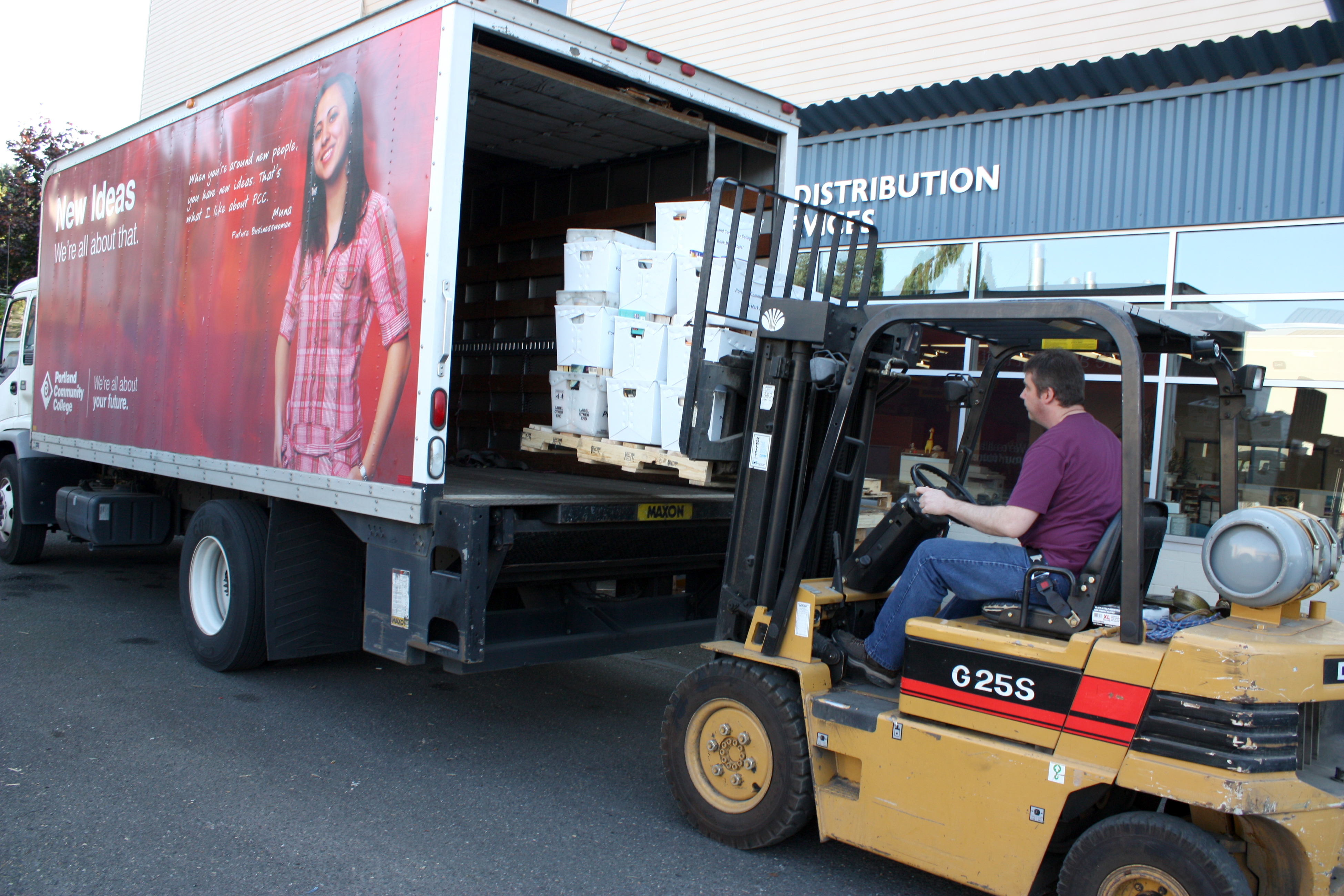 Central Distribution loads boxes of donated books destined for the Coffee Creek Correctional Facility in Wilsonville.