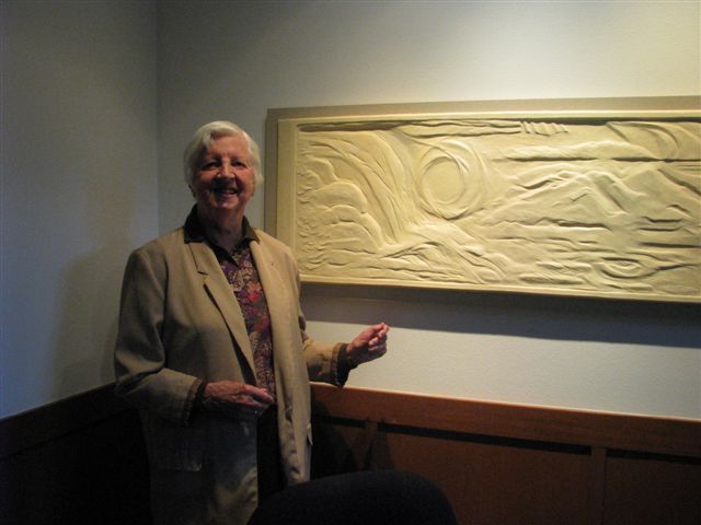 On Nov. 7, Sister Mary Noreen O’Leary celebrated her 90th birthday. Her relief “Treasured Gifts” depicts the beauty of nature — sun, water and trees — and allows the sight impaired to experience by touch.