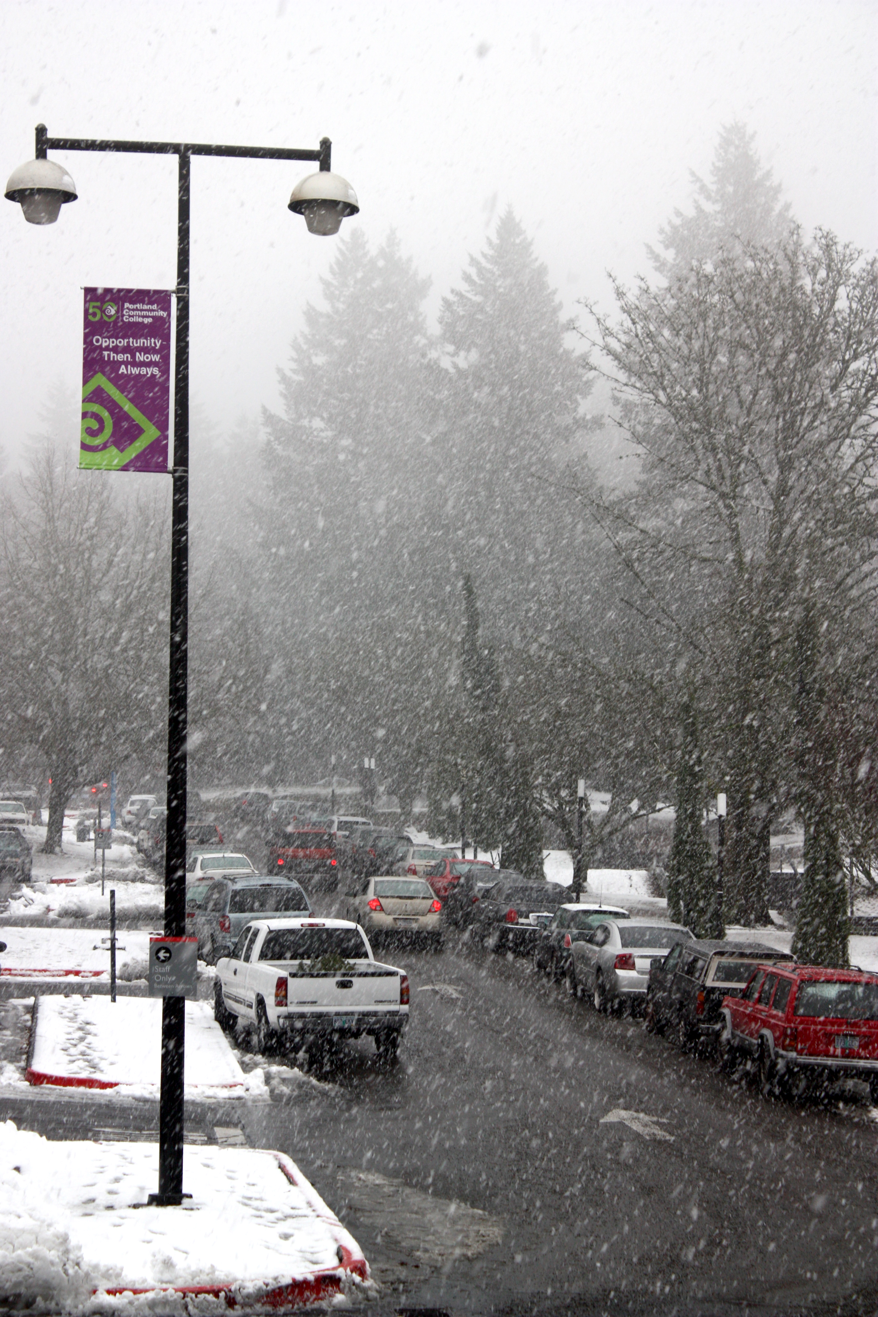 The parking lots were hit hard by the falling snow, which didn't deter staff or students.