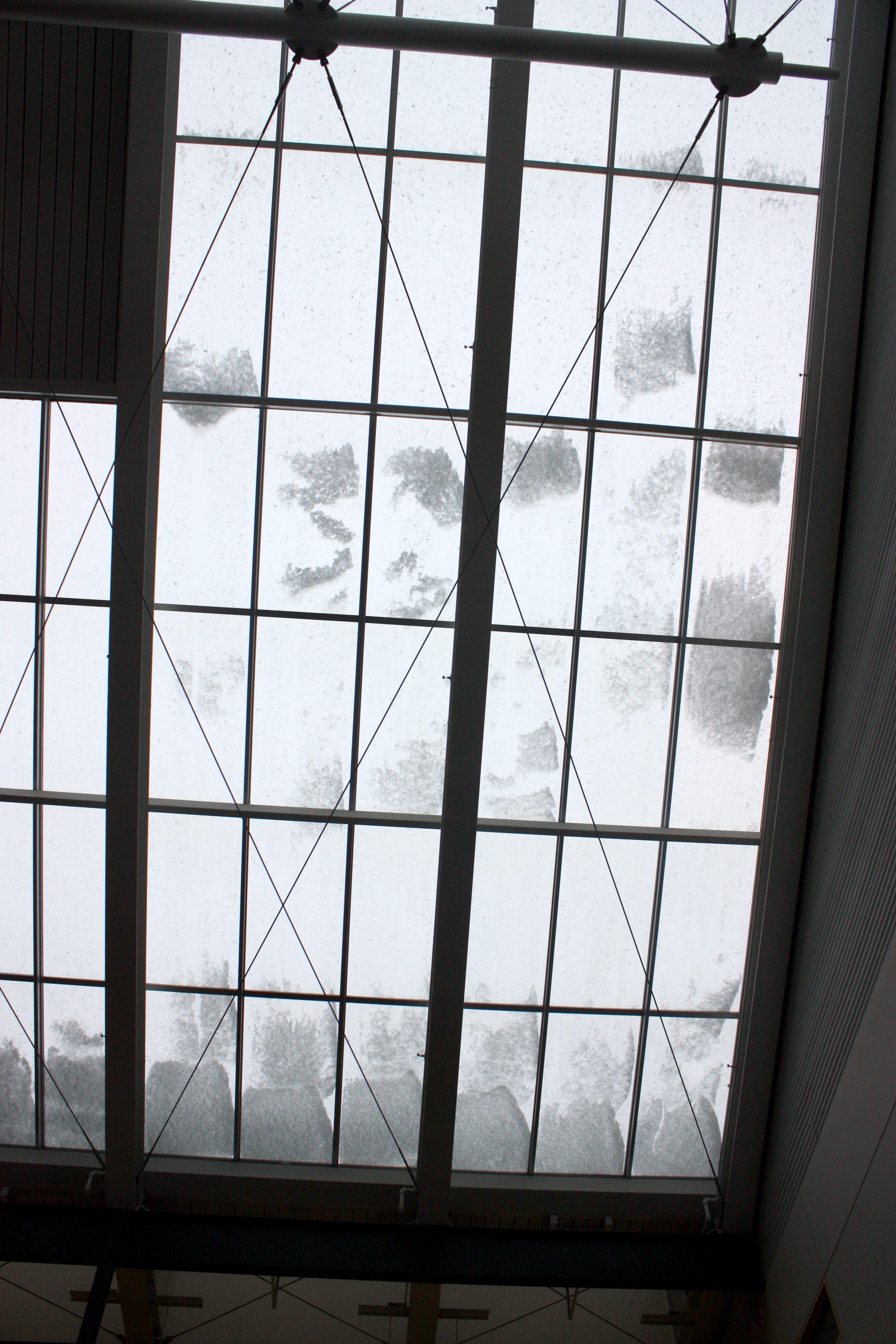 The TCB's winter garden had a bit of the white stuff built up on its roof.