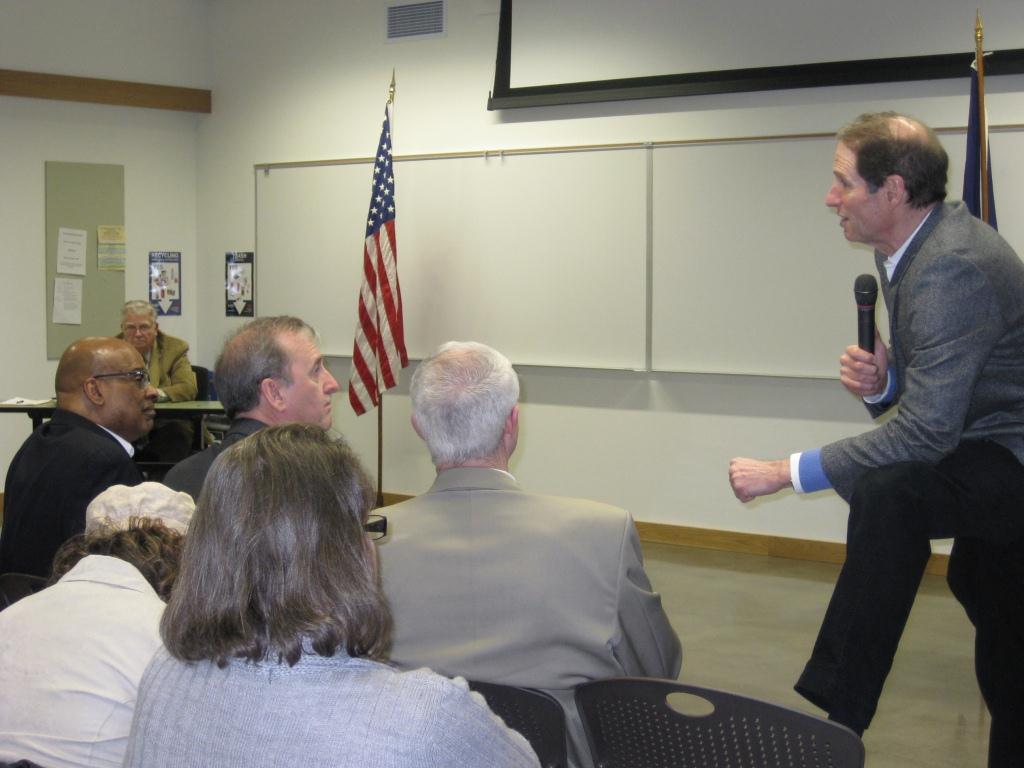 Senator Ron Wyden addresses attendees at the Feb. 4 Yamhill County town hall held at PCC Newberg.