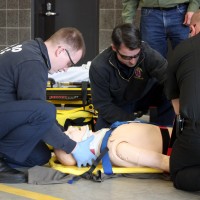 Paramedics with Hillsboro Fire demonstrate an emergency scenario with one of the high-tech mannequins purchased by PCC.