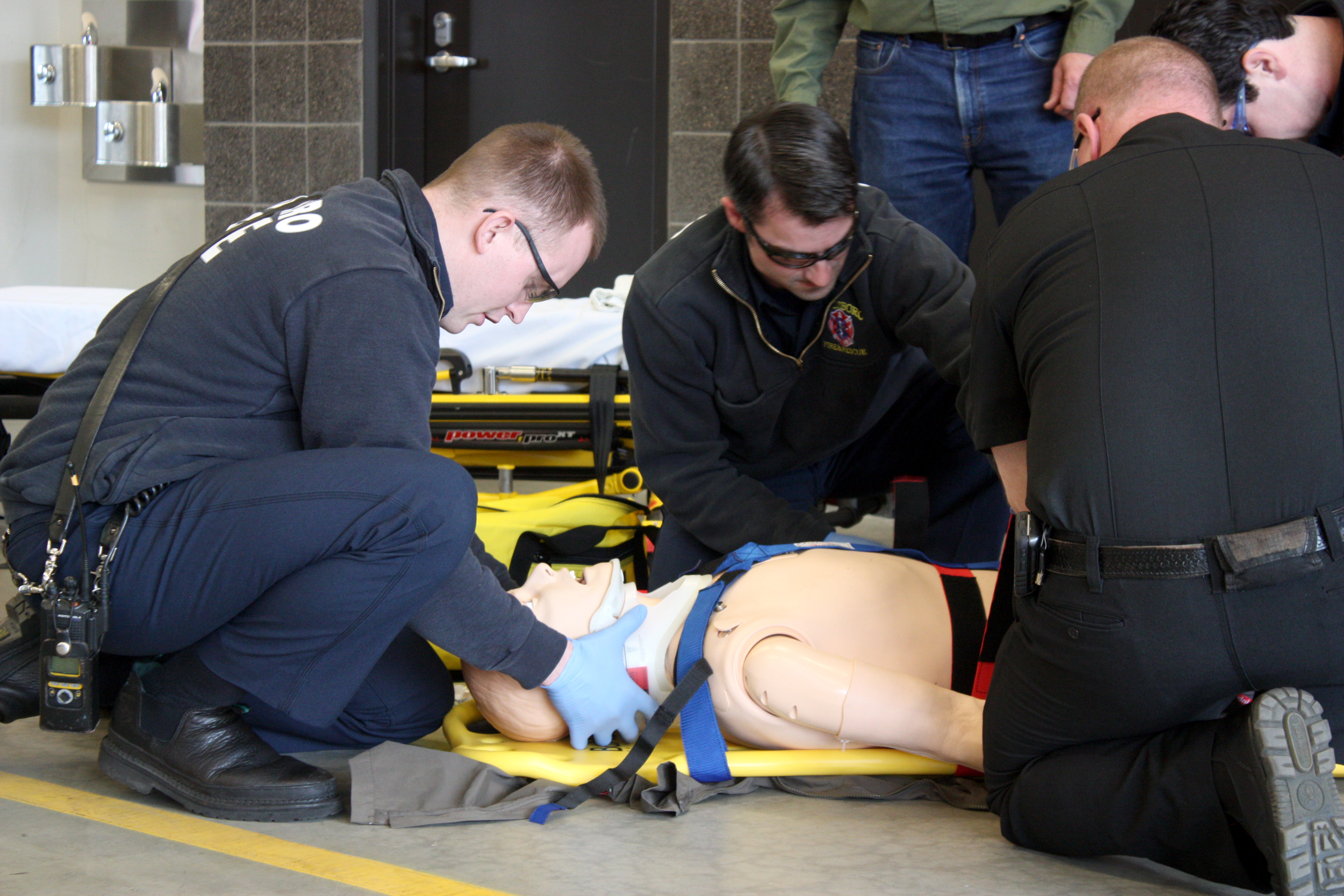 Paramedics with Hillsboro Fire demonstrate caring for one of the high-tech mannequins associated with the simulation vehicle.