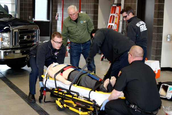 Paramedics with Hillsboro Fire demonstrate an emergency scenario with one of the high-tech mannequins purchased with PCC bond dollars.