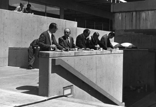 Founding President Amo DeBernardis (second from left) has lunch with his deans at Sylvania.