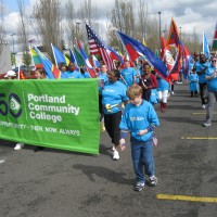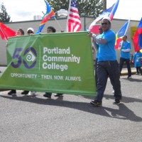 Mayor Sam Adams and Amanda Fritz participated in the parade, along with Southeast/Extended Learning Center President Craig Kolins. In addition to participating in the parade, PCC donates the use of the Great Hall at Southeast Center for volunteer registration and coordination on the morning of the event and shuttle buses to transport volunteers along the parade route.