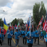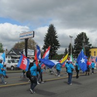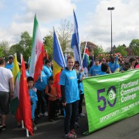 More than 80 faculty, students and staff from the Southeast Center volunteered to support or march in Southeast Portland’s biggest event of the year – the sixth annual 82nd Avenue of Roses Parade on April 28. Thousands of people from the neighborhood took advantage of a sunny Saturday to cheer on parade participants – including local businesses, high school bands, Portland Rose Society, veterans groups, and more than 50 PCC students and staff who marched in the parade passing out goodies to celebrate PCC’s 50th Anniversary.