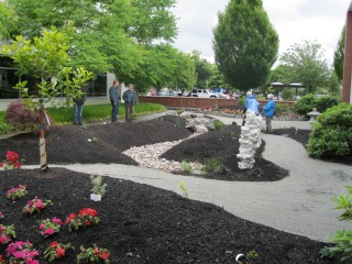 More than 25 volunteers helped dig, mulch, haul rock and gravel and plant seedlings and trees. The new space is in the courtyard across from the Southeast Center testing area.