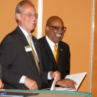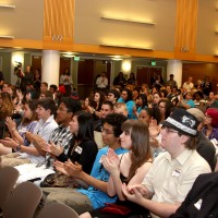 Portland Mayor Sam Adams and PCC District President Preston Pulliams handed out more than 200 college scholarships to brand new high school graduates. The awards, given to the students on Wednesday, May 30 at Portland State University through the Future Connect Program, are on top of the 150 such scholarships awarded to the first-ever class last summer.