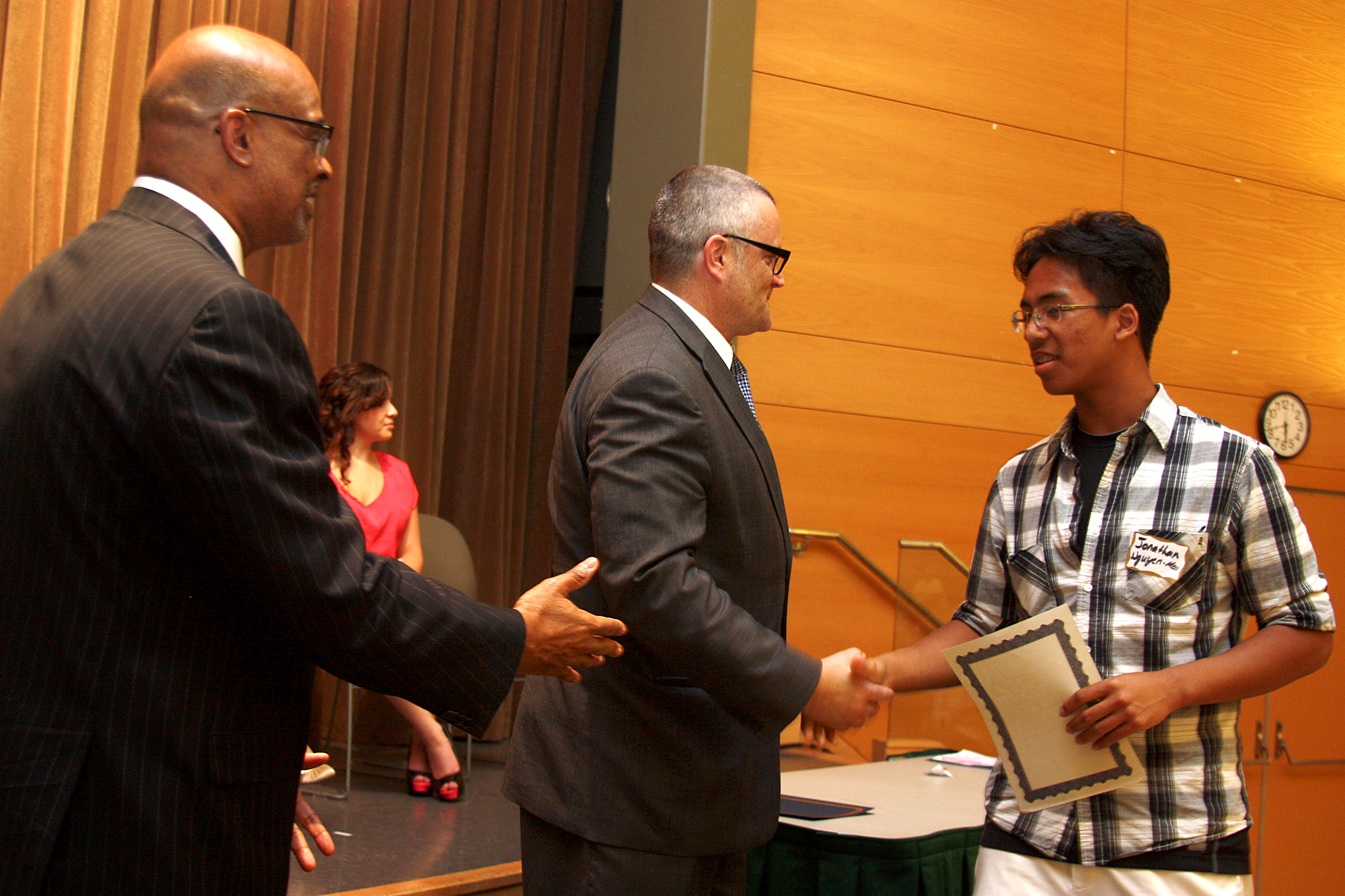 Mayor Sam Adams and Portland Community College District President Preston Pulliams shook the hands of every new Future Connect student.