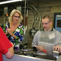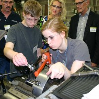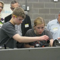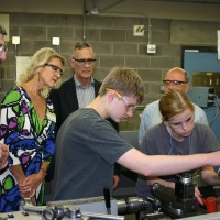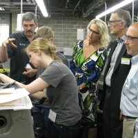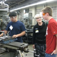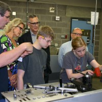 More than 20 high school students are participating in the fifth annual Robotics Camp at the Sylvania Campus, organized by the Machine Manufacturing Technology Program. On June 27, representatives from Intel and Mentor Graphics – two companies that help to fund the camp through the PCC Foundation – were given a tour of the machine manufacturing shop by instructors and students in the camp.