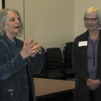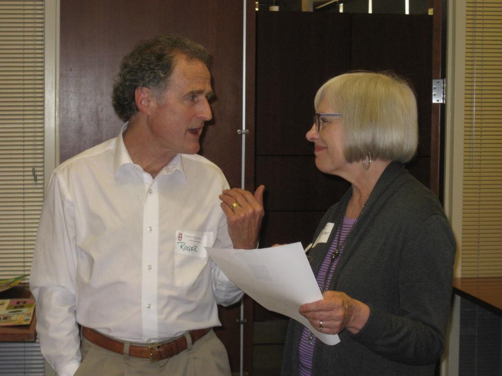 Linda Gerber, PCC Sylvania Campus president, chats with instructor Roger Anunsen, who teaches "Ramping Up Your Brain Health" as part of PCC's gerontology program. Both attended this year's gerontology graduation ceremony for students being awarded certificates of completion.