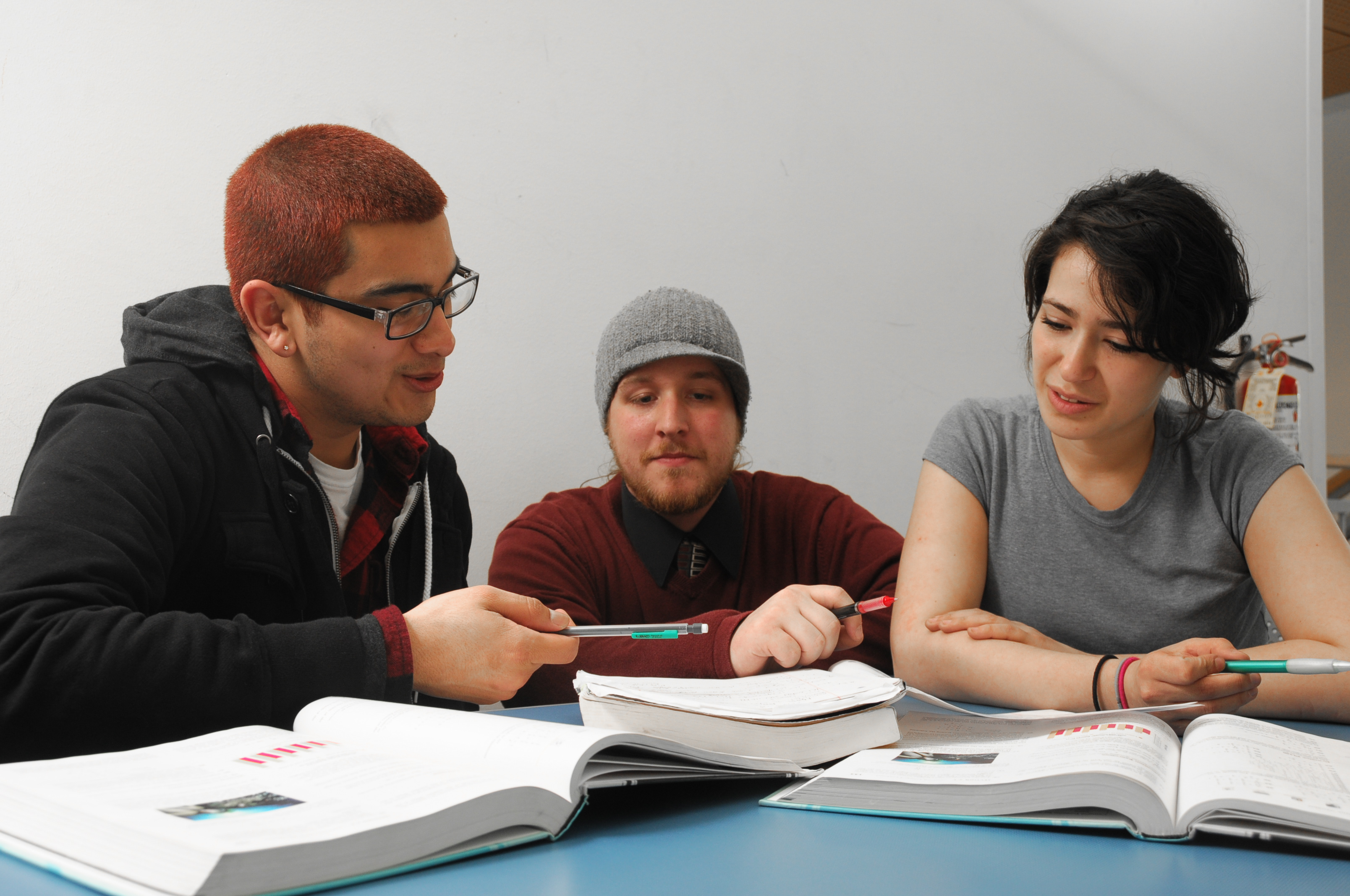 Once expelled from high school, Adam Clark (center) has come full circle and earns a living providing tutoring and technical support for the Gateway to College at the Southeast Center.