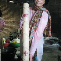 PCC’s Priscilla Loanzan holds a candle made by one of the En Via micro loan participants, for use in the local church in Teotitlán del Valle.