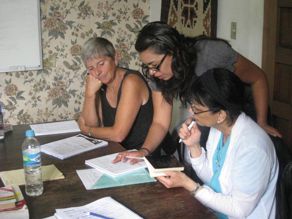 Teacher Itandehui Concepción González Jiménez reviews a lesson with students in her Spanish class at Instituto Cultural Oaxaca.