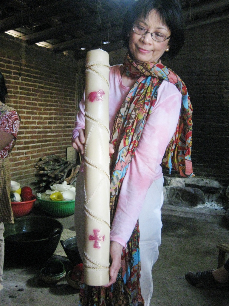 PCC's Priscilla Loanzan holds a candle made by one of the En Via micro loan participants, for use in the local church in Teotitlán del Valle.