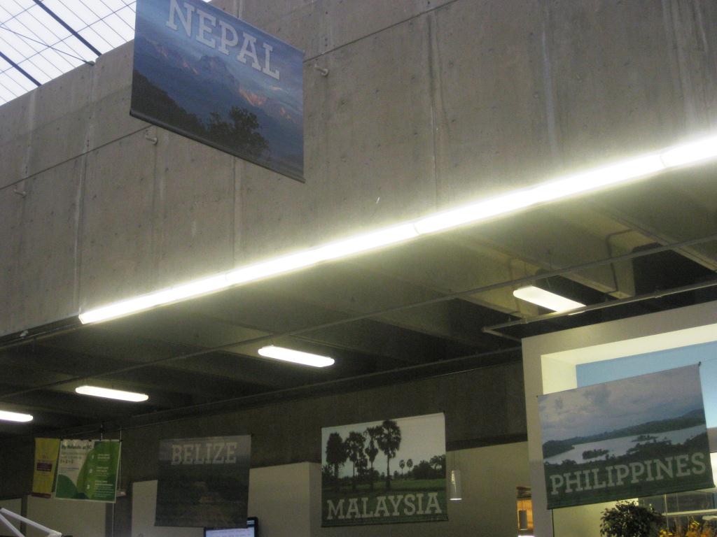 Banners representing Peace Corps work in various countries hang in the lower CC Mall area at Sylvania, as part of the college’s celebration of International Education Week.