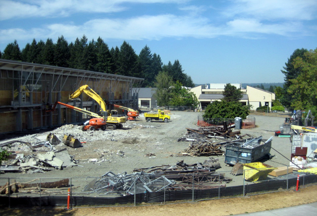 This photo, taken in September 2012, shows Fortis Construction separating different materials that came from the deconstruction of the east side of Building 7 at PCC’s Rock Creek campus.