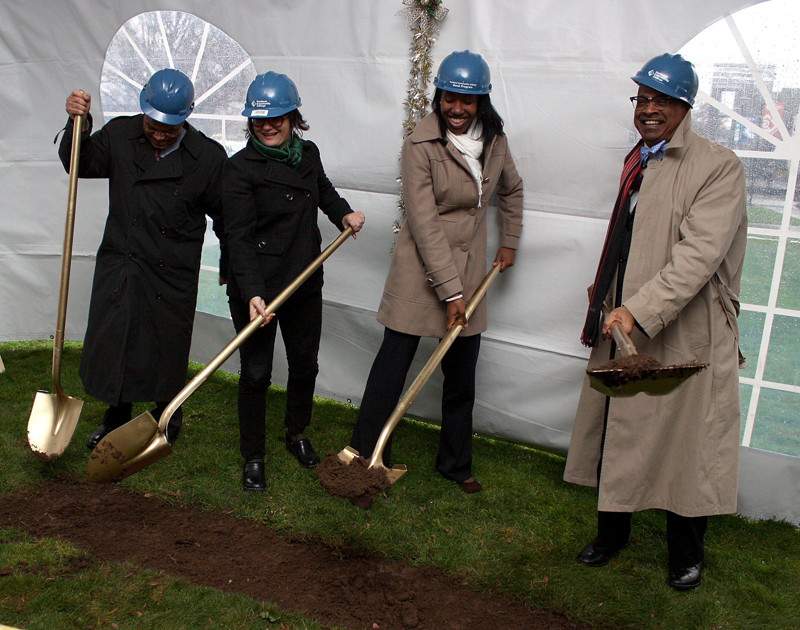 Left to right, Cascade President Algie Gatewood, Cascade Student Leader Esther Forbyn, PCC Board Member Kali Thorne Ladd and College President Preston Pulliams. Campus and college leaders as well as key community partners attended the campus’ bond groundbreaking on Tuesday, Dec. 11 at the site of where the new underground parking structure will be built.
