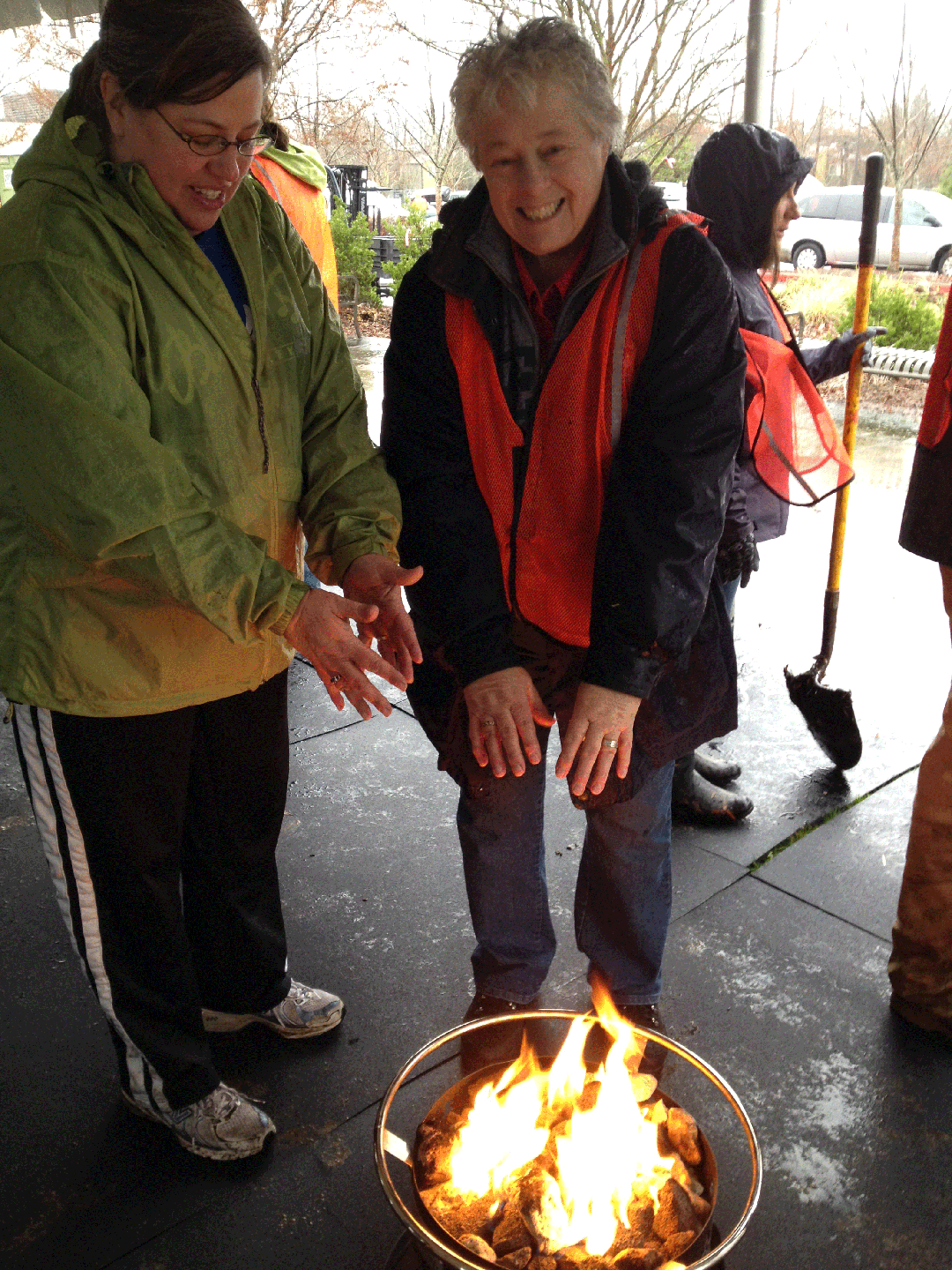 Despite the wet and cold winter day, community members were set to dig up the plants they wanted to take home. For larger trees, Hoffman crew members had an excavator warmed up and ready to go. In addition to the free plants and trees, Hoffman set up an event tent to serve free bratwurst sausages with all the fixings and provide fire pits for people to warm themselves.