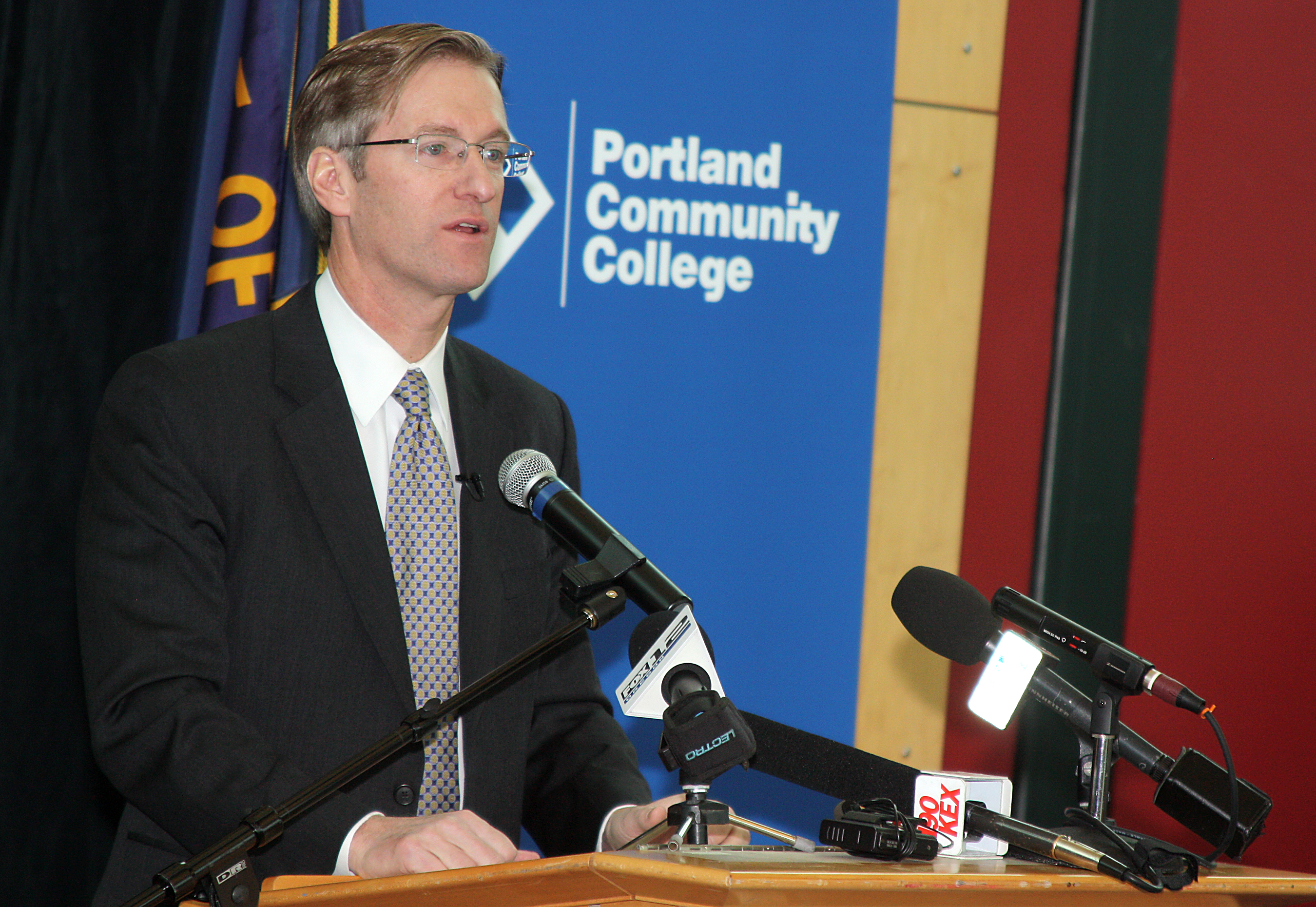 Standing alongside business leaders, students and educators, State Treasurer Ted Wheeler said the Opportunity Initiative would reduce the heavy burden of student debt while helping them become better prepared to create and fill the jobs of tomorrow.