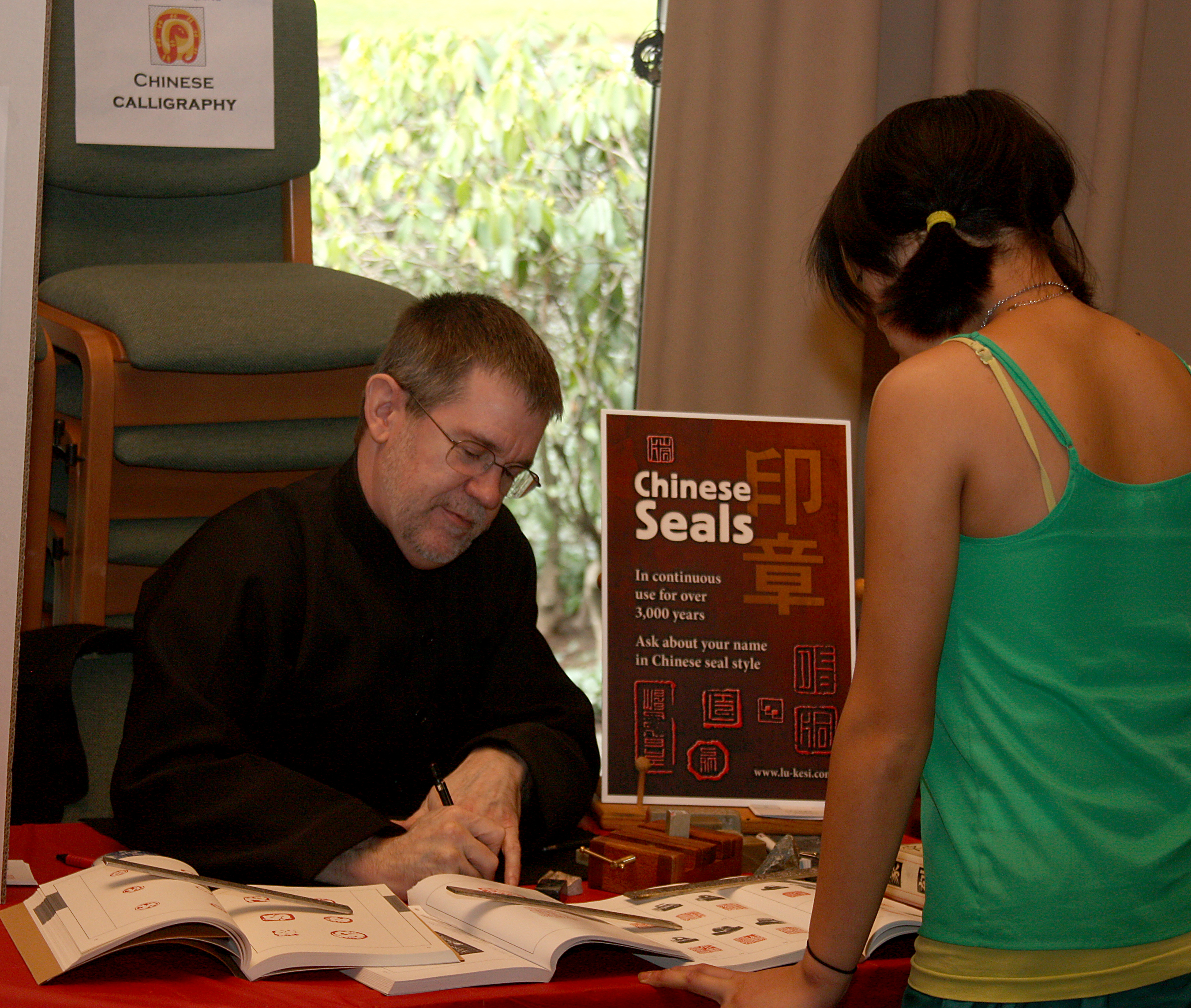 Chinese calligraphy is a standard table at PCC's Asian New Year Celebration.