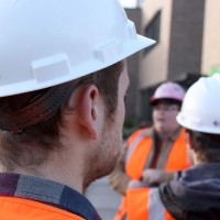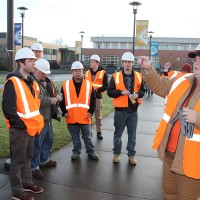 Jacob McKay (background), the Cascade superintendent for Hoffman Construction, welcomed students from the Trades Preparation (APR 200) class to his construction site.