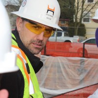 • Jacob McKay (background), the Cascade superintendent for Hoffman Construction, welcomed students from the Trades Preparation (APR 200) class to his construction site.
