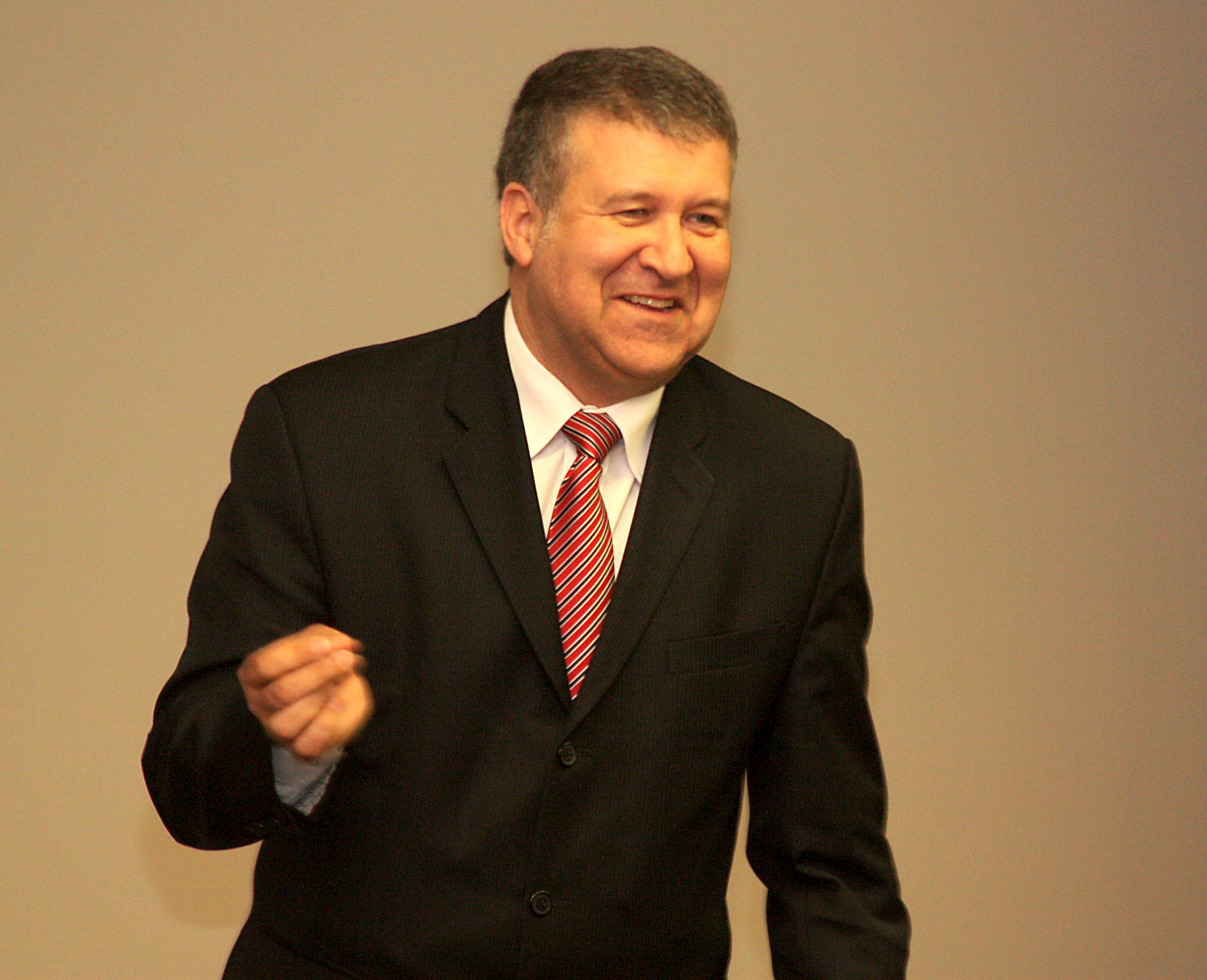 Dr. Jeremy Brown speaks to PCC staff, faculty and students at a recent presidential finalist forum. The PCC Board of Directors confirmed that he is the college’s top candidate for the position and that contract negotiations are under way.